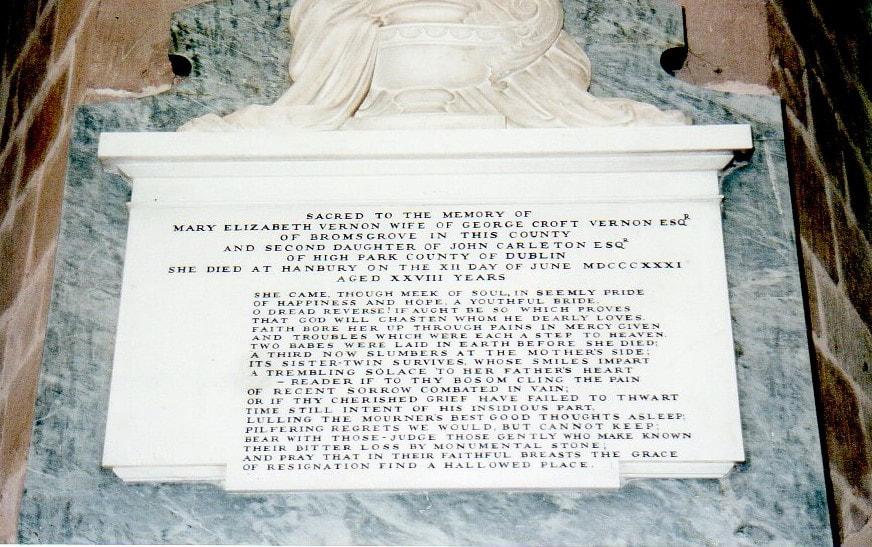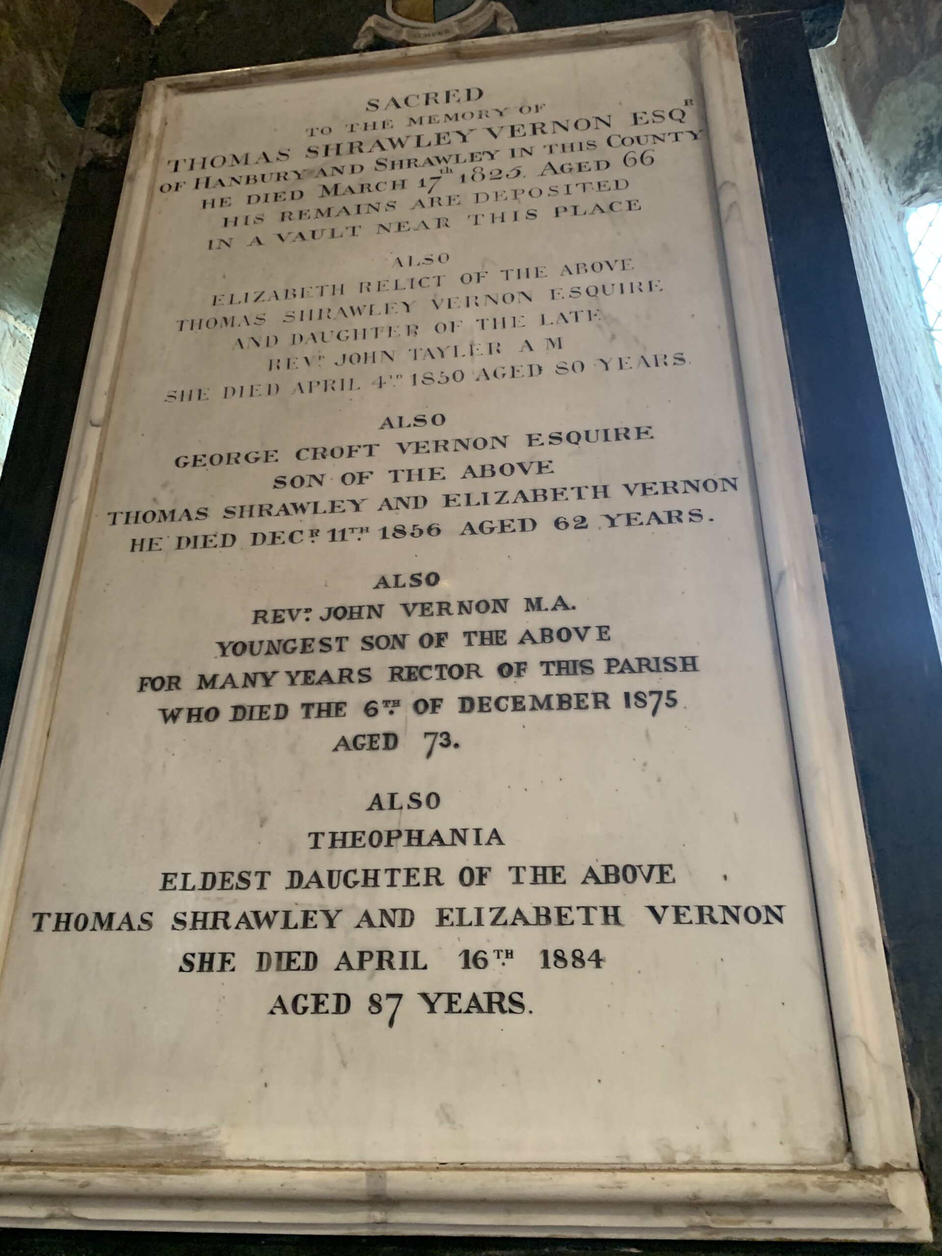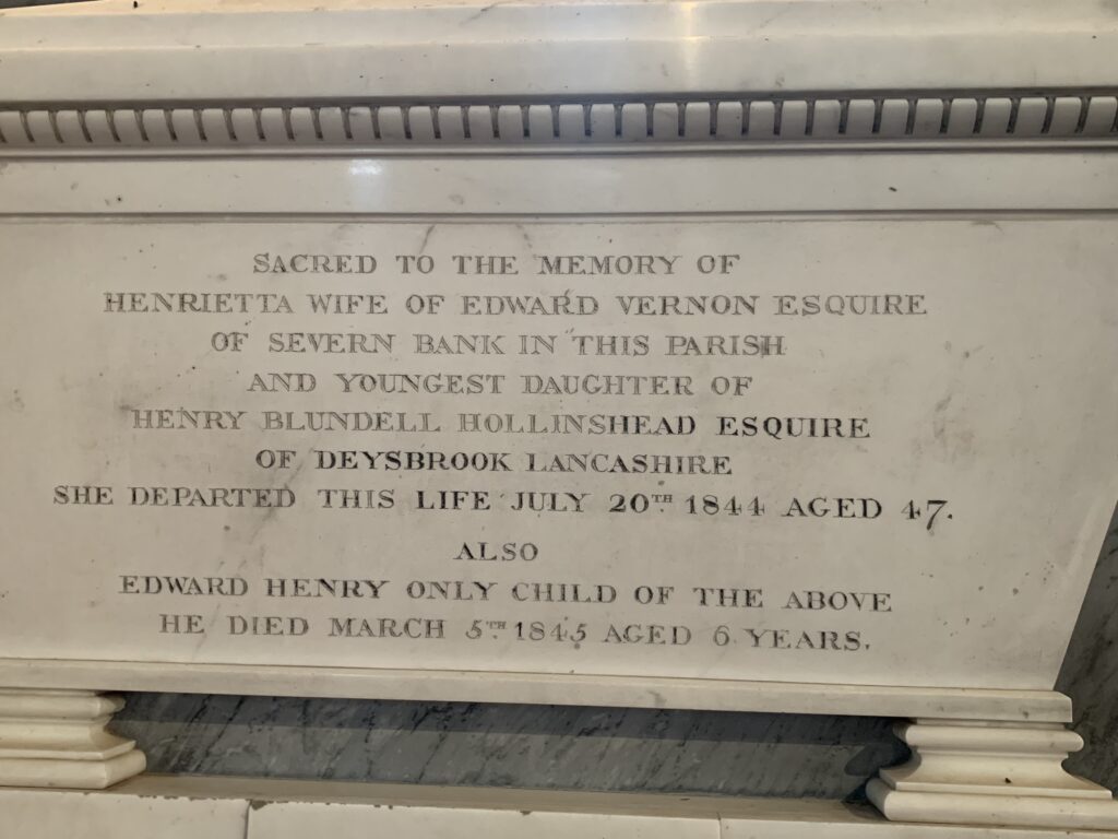 Bourne FamilyWilliam and Mary Bourne and their 3 childrenEdward BurtonWilliam CliffeHelen MillsTom PartridgeDaniel Piercy and wife Jane PiercyEdward SevernJohn Patrick Laing Thomson R.N.EAS TolleyJohn TolleyVernon Bourne CharityVernon FamilyHenrietta Vernon and her son Edward Henry VernonMary Elizabeth Vernon Verse by WordsworthThomas Allen VernonJohn WestwoodWilliam Foley VernonJohn Nicholas Wharton