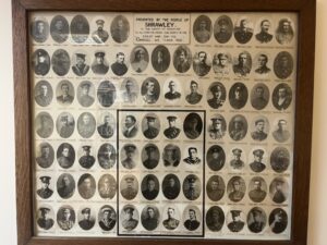 To the right of the War Role is a framed collection of portrait photographs of all of the men and women from the village who had served in the Great War.