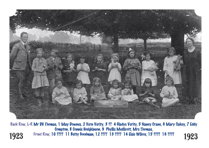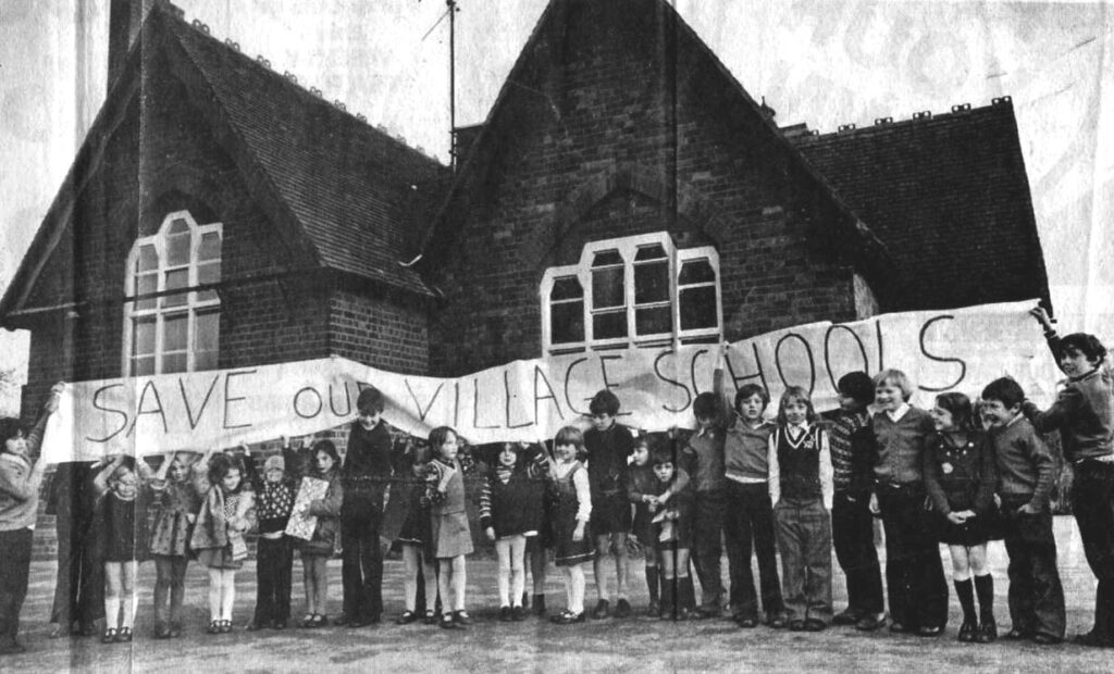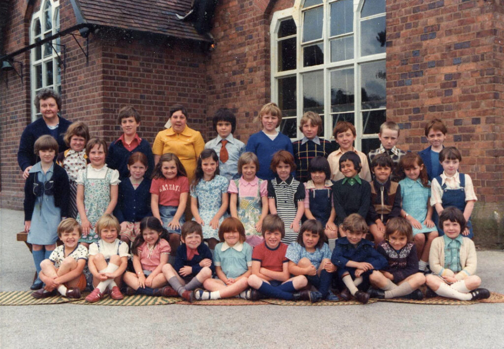 1977 The last class before closure. Mrs Dunn with Richard Whitmore, Sam Whiting, Michael Walker, Sally Powick, Michael George, Jane Powick.