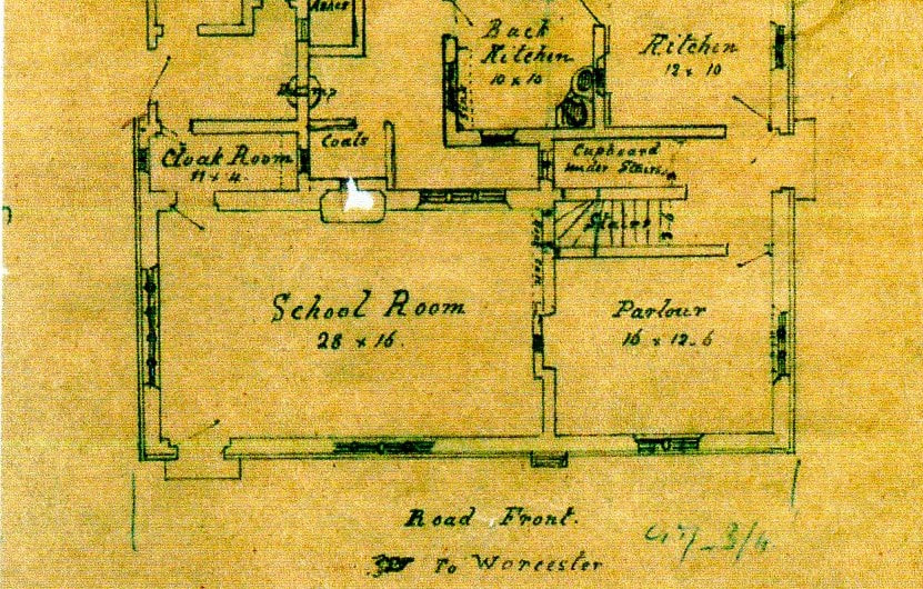 Copies of the original drawing and plan for the school. Originally there was just the one School Room attached to the Headmaster’s house